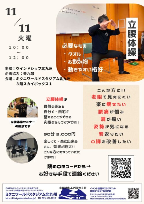 立腰整体・立腰体操 善九郎です!! 来月も、ミクニワールドスタジアム様にて 「99%の人が知らない身体の真実」 講義&体験会を行います!! 講義だけでも目から鱗の話ばかり!! 体験で講義の内容の裏付けも😆 前回と全く同じ […]